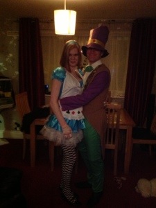 I was in a Mad Hatter Costume and Tracie was Alice 🙂