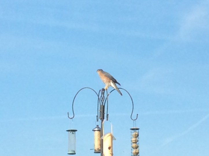 I’m pretty sure it’s a Buzzard, but I’m not a hundred per cent on that, my bird watching days are long past. This is one of the reason I love living in the country. My Dad says there’s about half a dozen Buzzards in the area and it’s great to see one this relaxed. Needless to say that besides our chickens there wasn’t another bird in the garden to be seen!