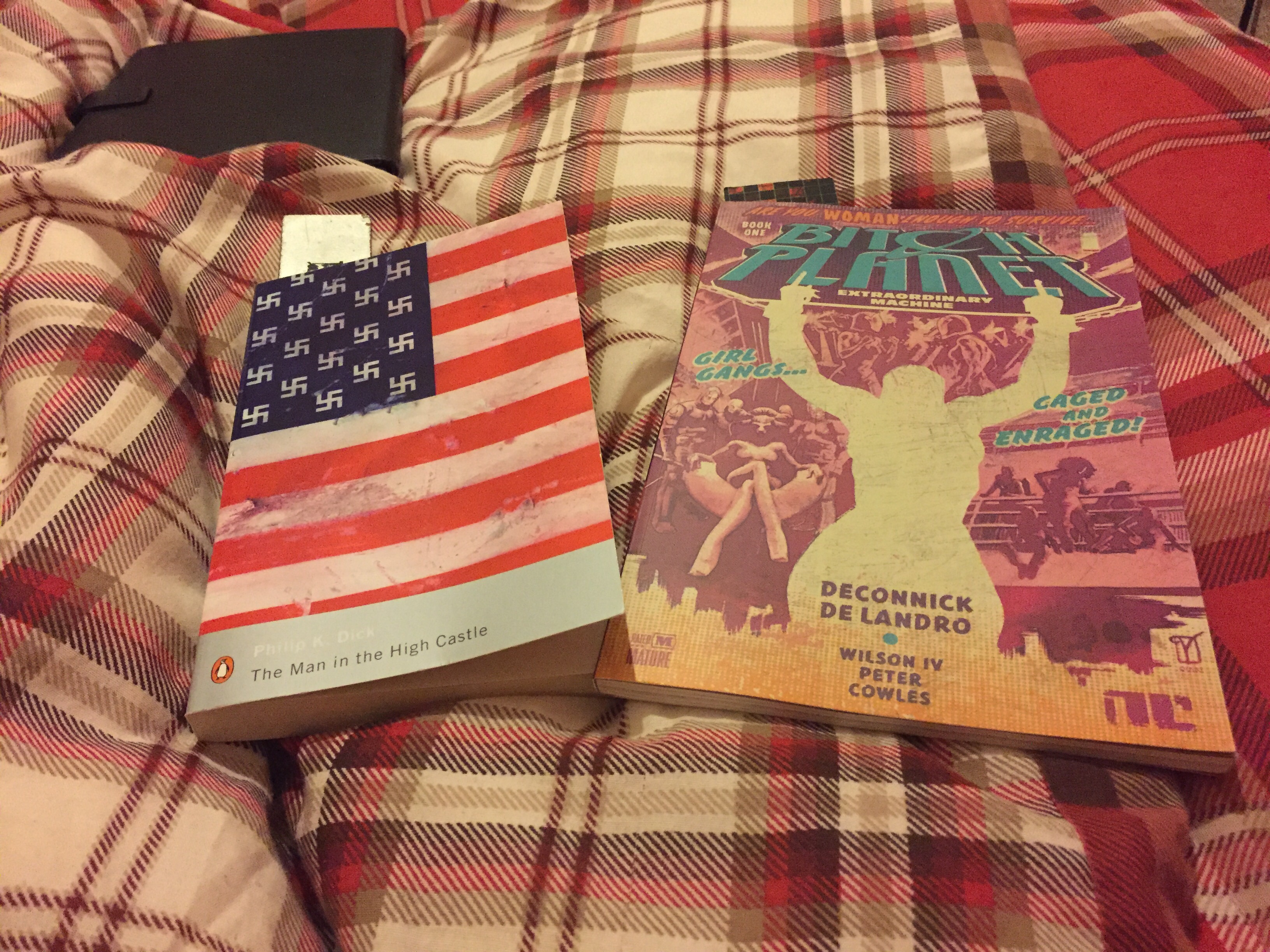 The comic I’m reading is Bitch Planet: Book One by Kelly Sue DeConnick and Valentine De Landro. This is a really interesting comic book. I’m liking how the world is set up and how the story is being built up. The artwork is pretty cool as well. I’m about halfway through this and I’m looking forward to seeing how this first one wraps up.