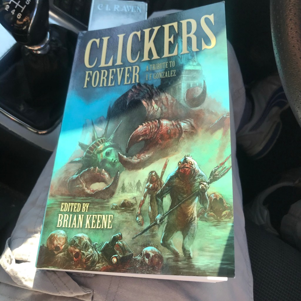 The two books I’ve been reading are Clickers Forever, which is the tribute anthology to J.F. Gonzalez. The other is Six Wakes by Mur Lafferty.