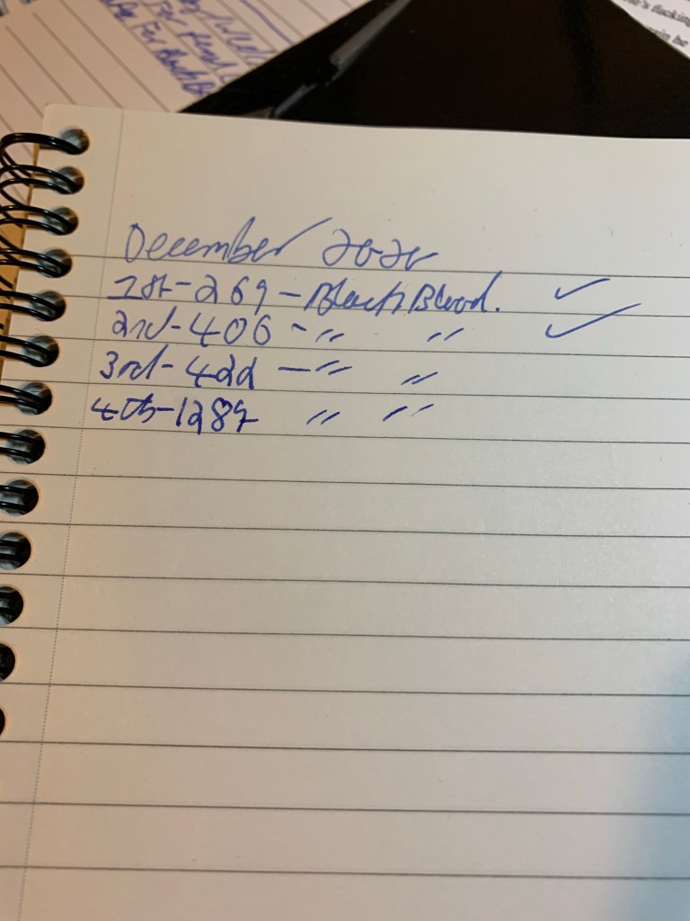 I’ve printed off a draft of a story I wrote for NaNoWriMo 2018 (Lovers), and I’m going to read through that tonight, leave it till next week and then read through with a pen and make notes. This is one where it’s done, but I’ve never been happy with it. For a start it’s a romance, which I’m not exactly familiar with or known for; and secondly I always knew it was missing something. The other day I had an idea just pop into my head which changes the entire energy of the story and I’m really eager to get stuck into it. I’m going to be patient though and not start on it until next year. I want to read it those couple of times, make notes, and then let it simmer for a few weeks. I also need to watch a movie as I’m going for a format that this particular movie does very well.
