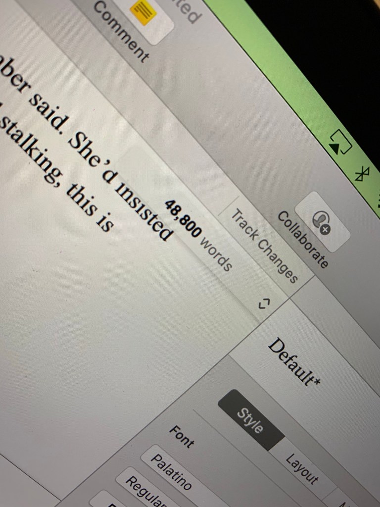 596 today on the vampire book, but I also deleted 2466 words today. Before I deleted those words the overall word count was 48,800 words. At this rate I think this book will end up about 70,000 words. There’s a lot of story to go, but I can see the ending in sight.
