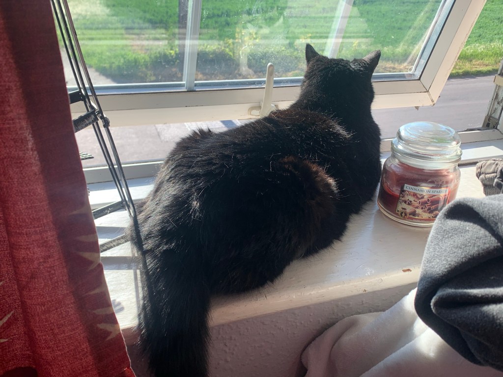 She jumped off and Max decided to it was time to play with Raven. She wasn’t interested and smacked him on the nose and jumped back in the window. Can you guess what she was doing? I repeated the earlier removal method and this time she ran off down the landing.