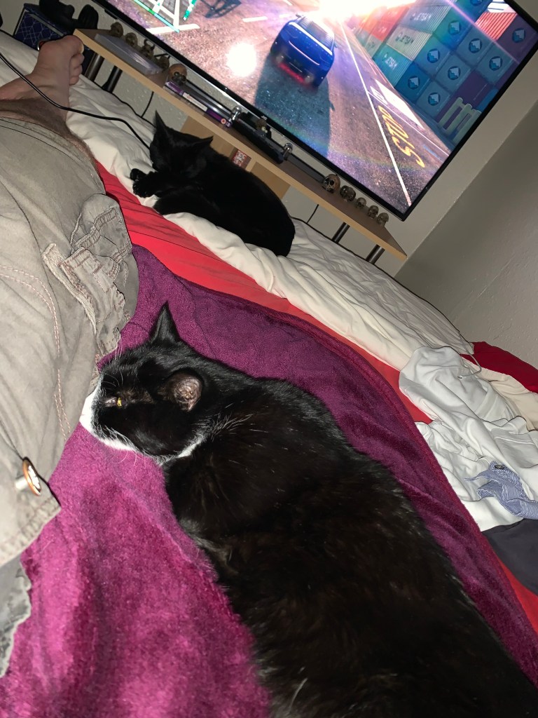 The rest of the day has been very low impact. I made sure I did as much as I could yesterday after work and this morning before the temperature rose to its peak. Even the cats have done very little. I’ve not let either out, which hasn’t bothered Dizzy but normally Raven would be trying to claw her way through the windows. She hasn’t. Most of the afternoon both cats were sleeping on my bed as I did a little gaming.