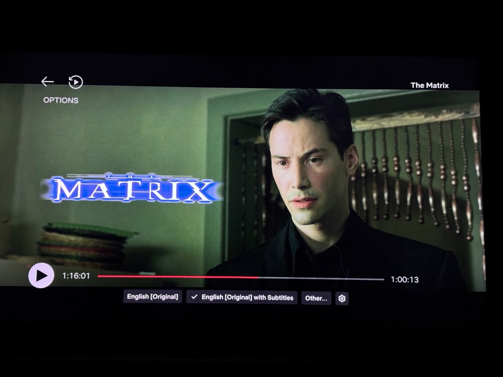 I’ve seen it numerous times before, but I’d never watched it with subtitles. (I do this a lot when watching movies late at night). Even though I feel I have a good knowledge of the movie but seeing the words come up kinda hit home deeper. It makes the dialogue heavy scenes hit home with the narrative. The philosophy and what the world we have built around is, in all truth, a fragile world.