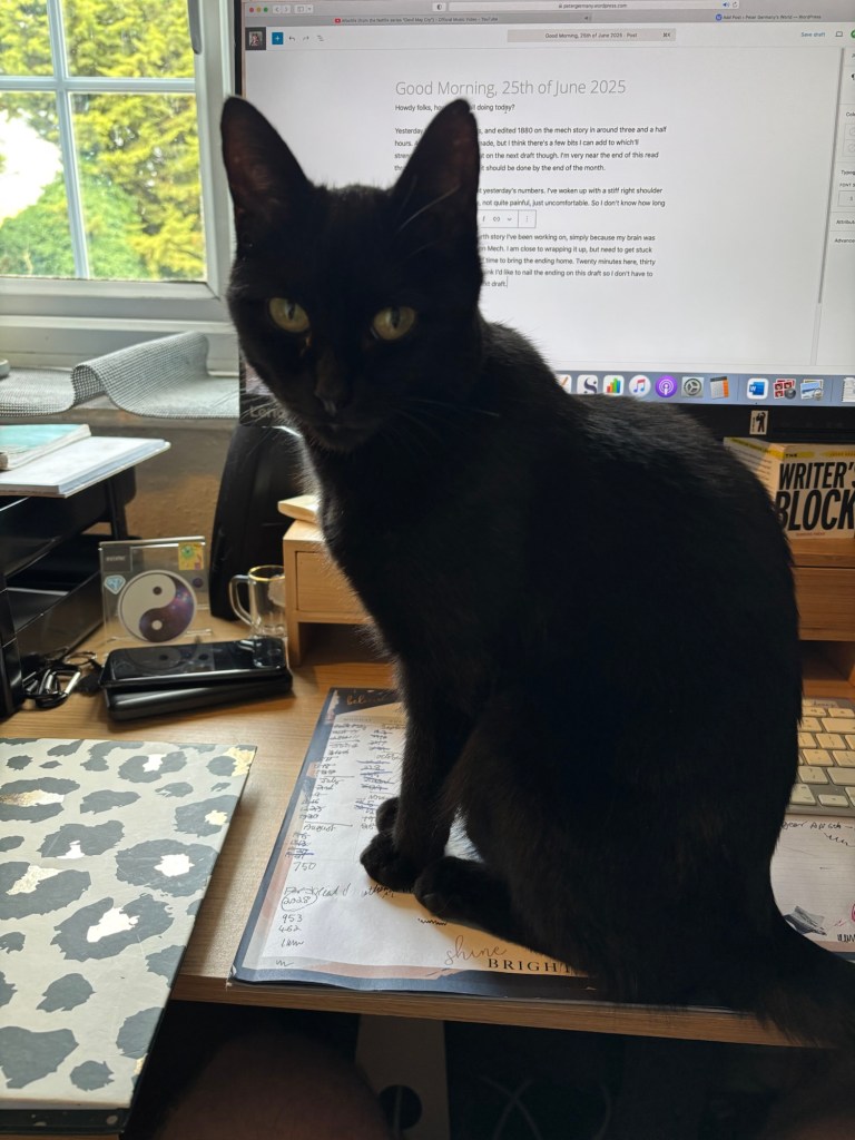 Today’s a work day, so no big word counts. I think I need to get into a habit of big writing sessions on days off and then the small snippets I’m doing while on a break at work. That seems to be working at the moment.