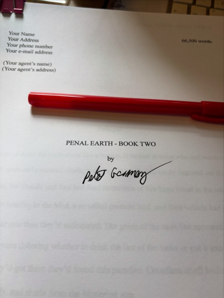 Howdy folks, not much of an update today as I haven’t written. I’ve got my daughter this weekend, but I did print off Penal Earth 2 and it’s with my first reader as we speak.